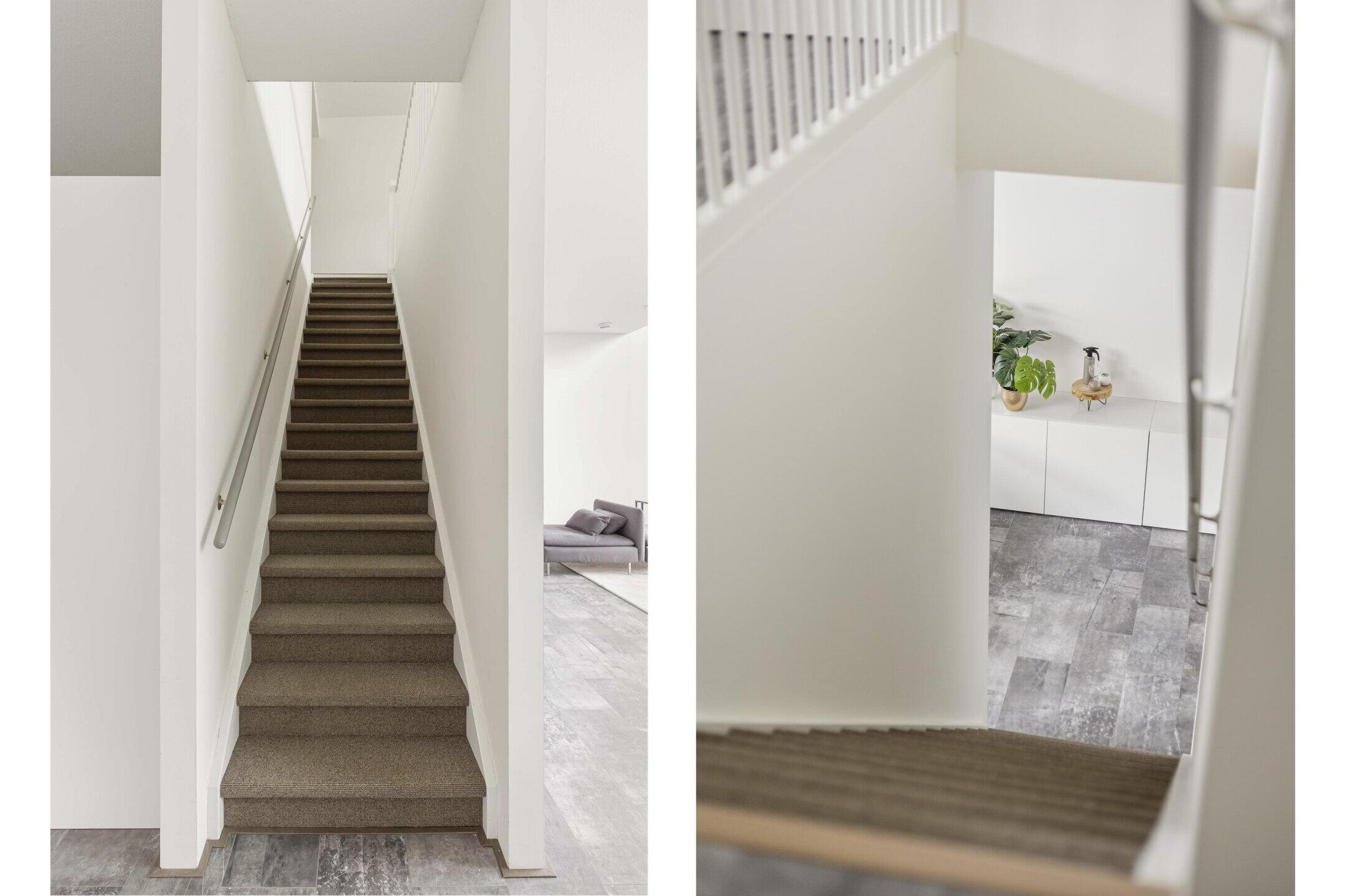 De vide naar de bovenverdieping versterkt het ruimtelijke karakter van de woning en zorgt voor een mooie verbinding tussen de twee woonlagen.
