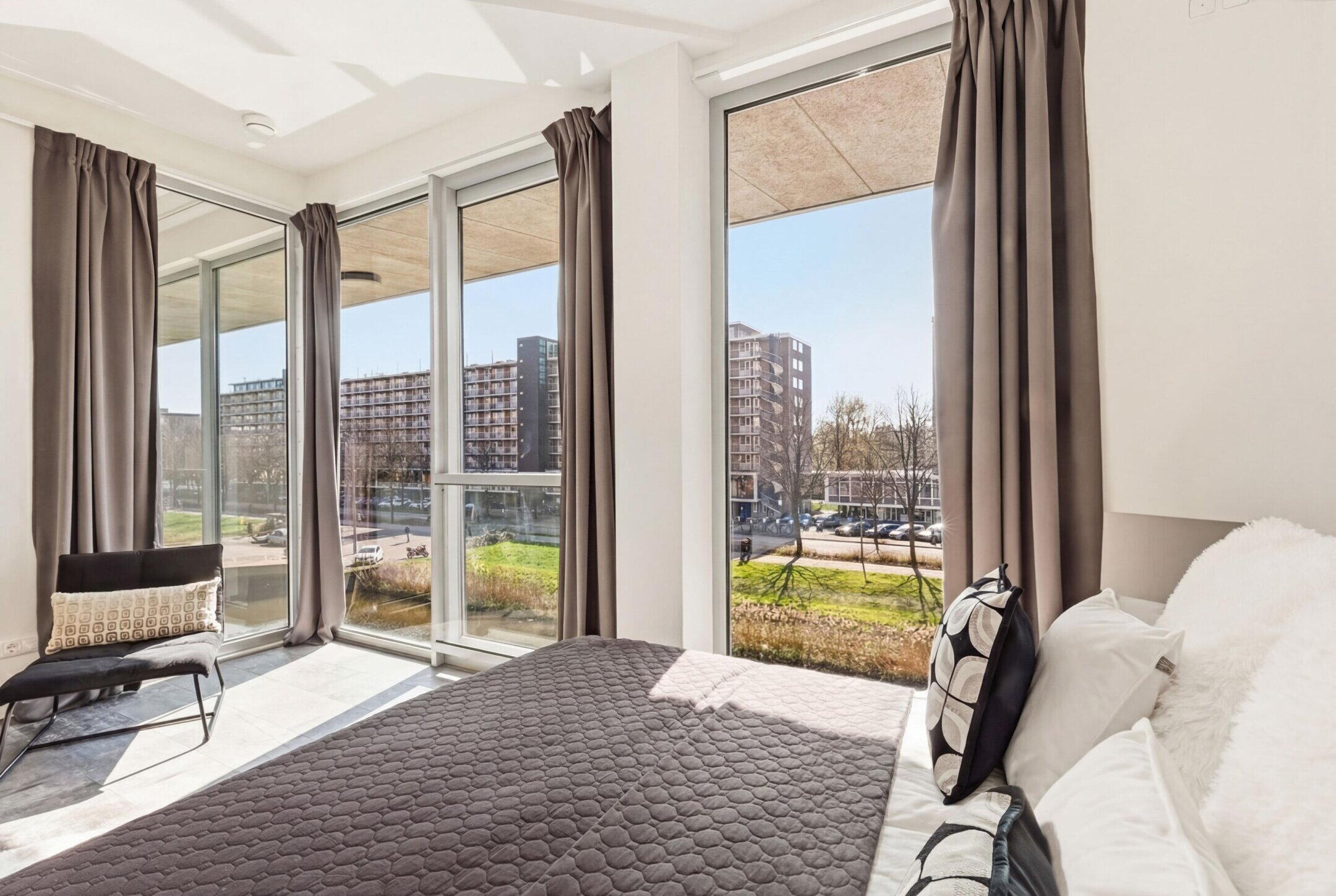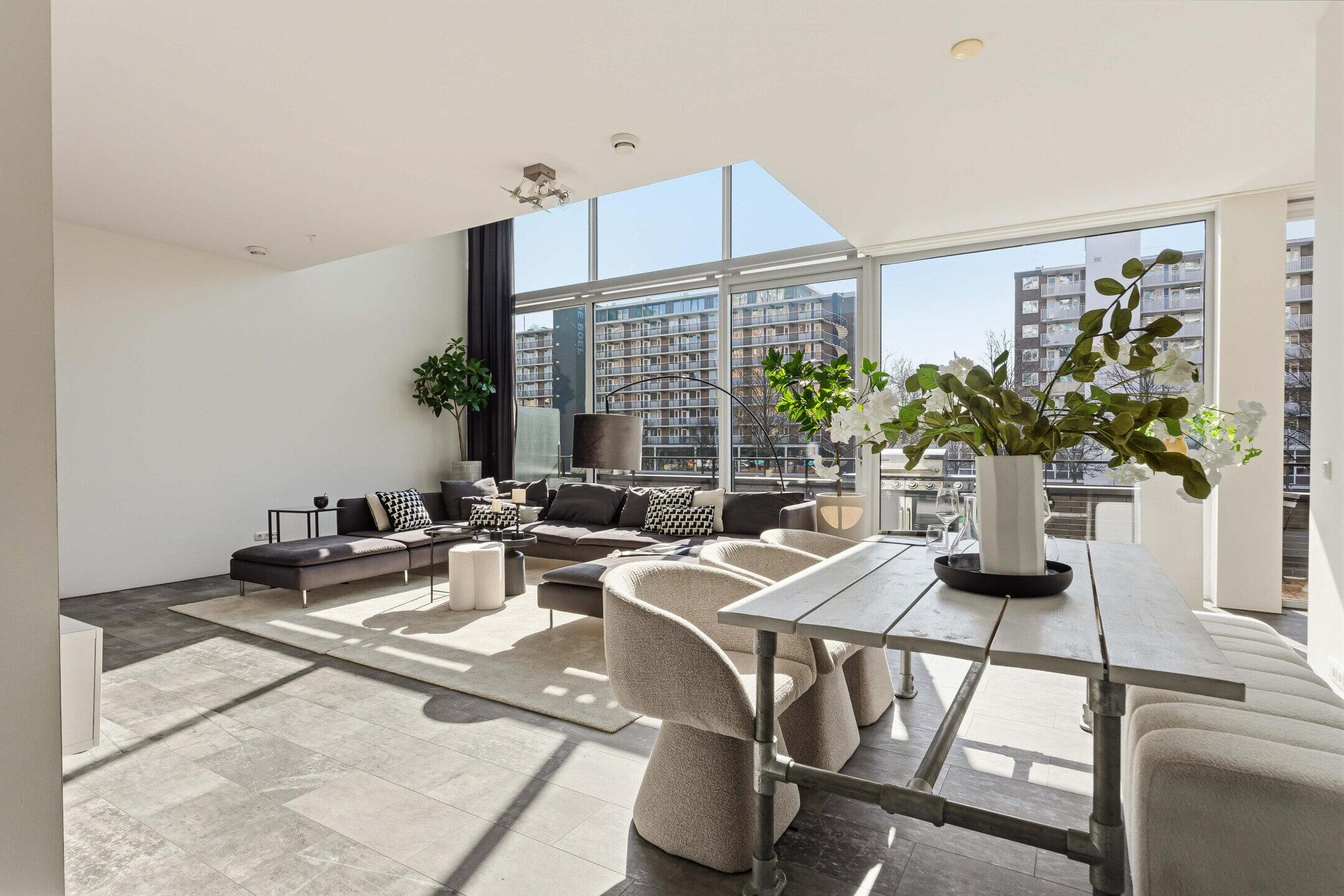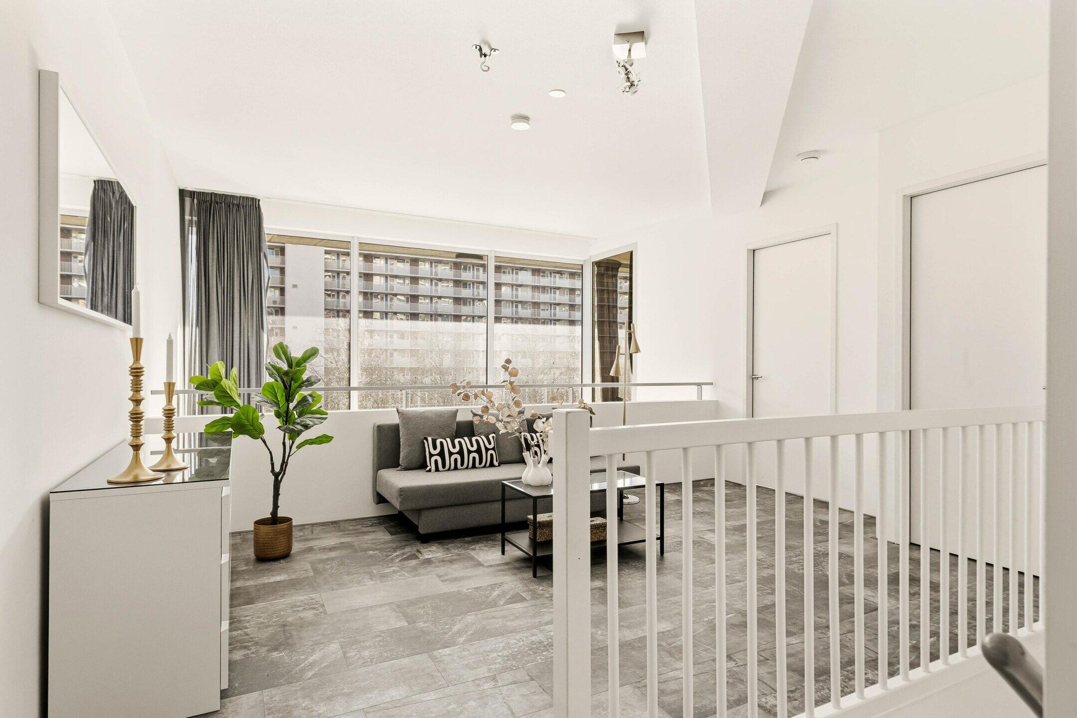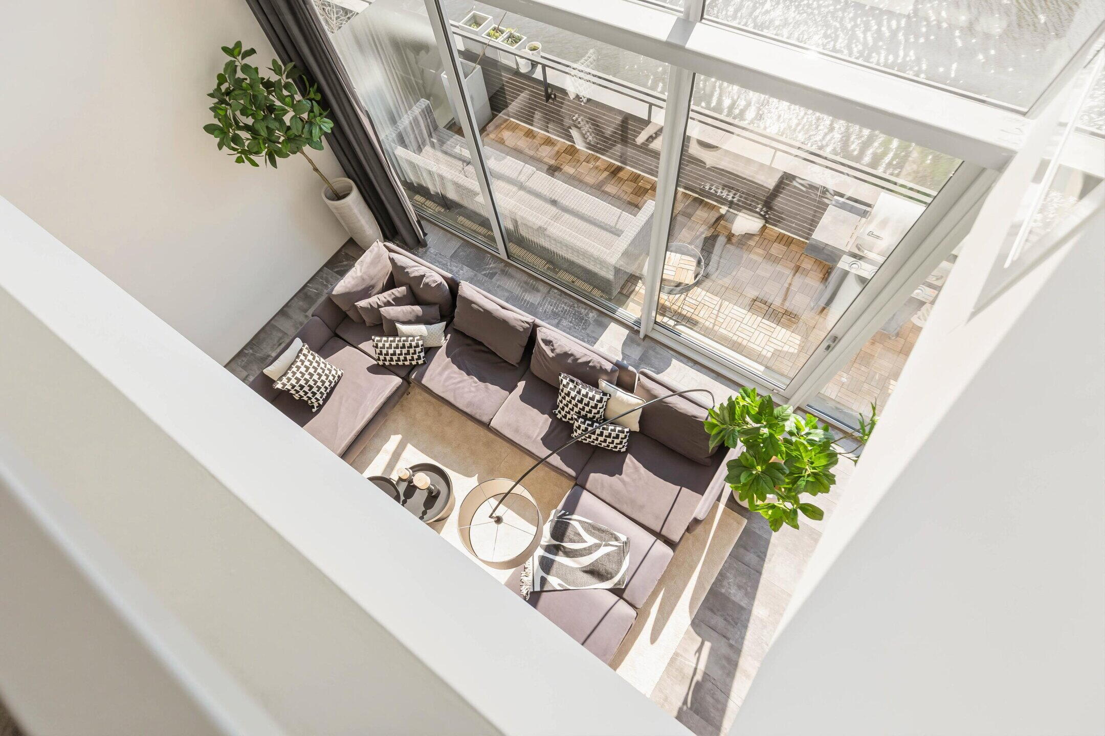 Wat dit appartement direct bijzonder maakt, is de combinatie van ruimte, licht en uitzicht. De grote raampartijen, het hoge plafond in de woonkamer en de vide naar de bovenverdieping zorgen voor een indrukwekkend gevoel van openheid. Vanuit de living kijkt u uit over de Boelegracht, waardoor u letterlijk boven het water woont terwijl de dynamiek van de Zuidas zich om de hoek bevindt.