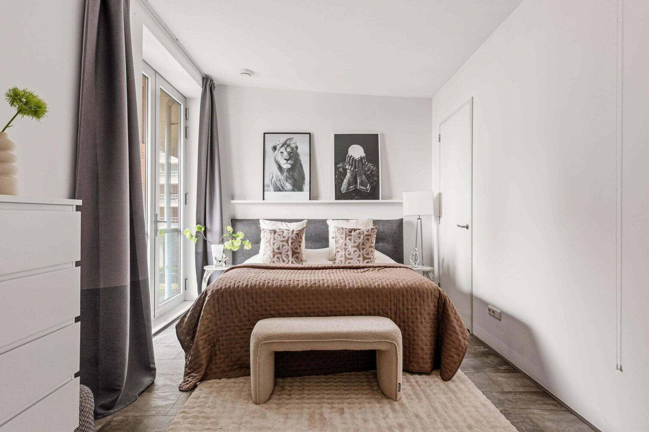 De master bedroom is bijzonder ruim en biedt plaats aan een comfortabele slaapruimte en inbouwkast. De tweede slaapkamer is eveneens van goed formaat en ideaal te gebruiken als logeer-, werk- of kinderkamer.