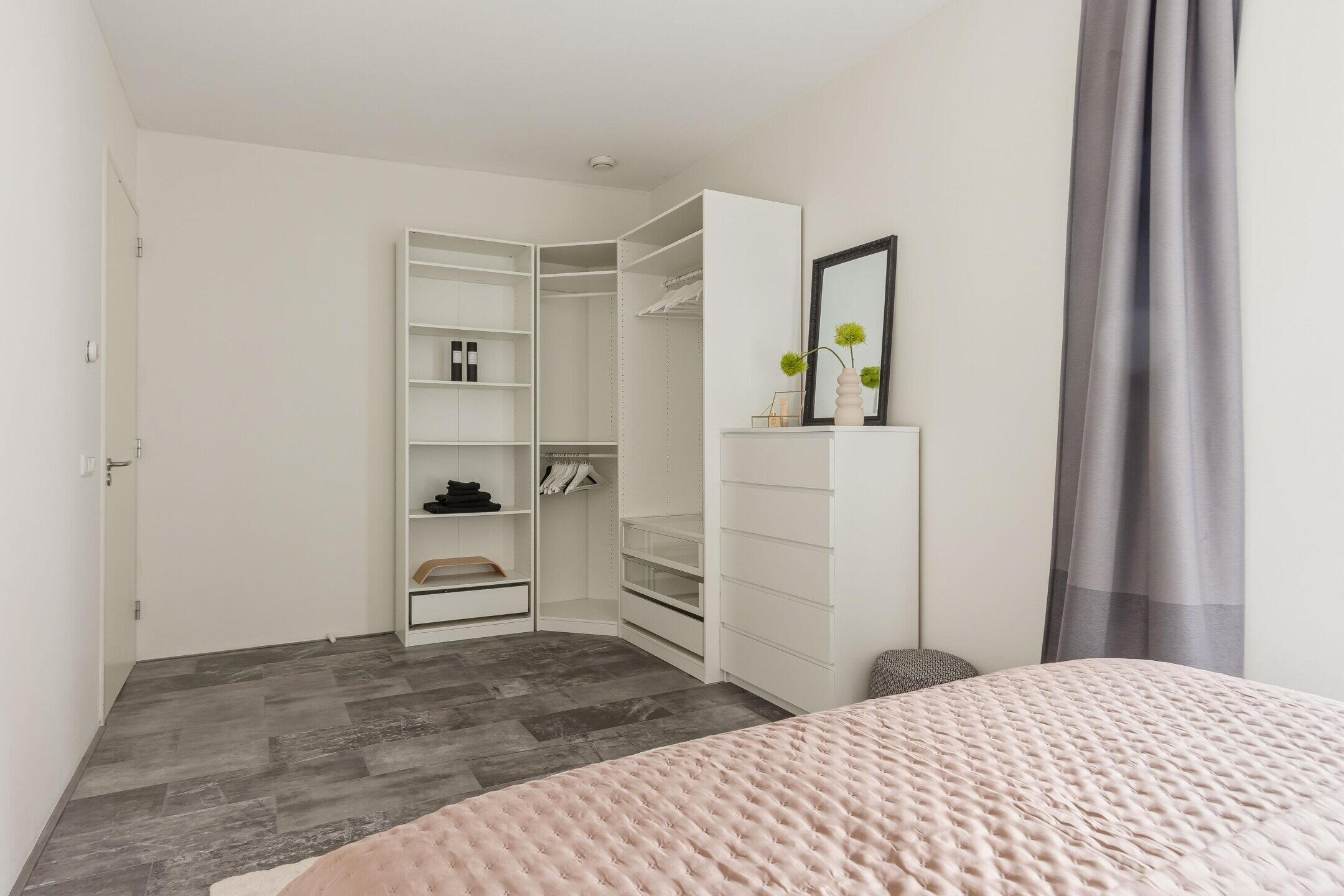 Daarnaast bevindt zich op deze verdieping een praktische inpandige ruimte voor wasmachine, droger en extra bergruimte.