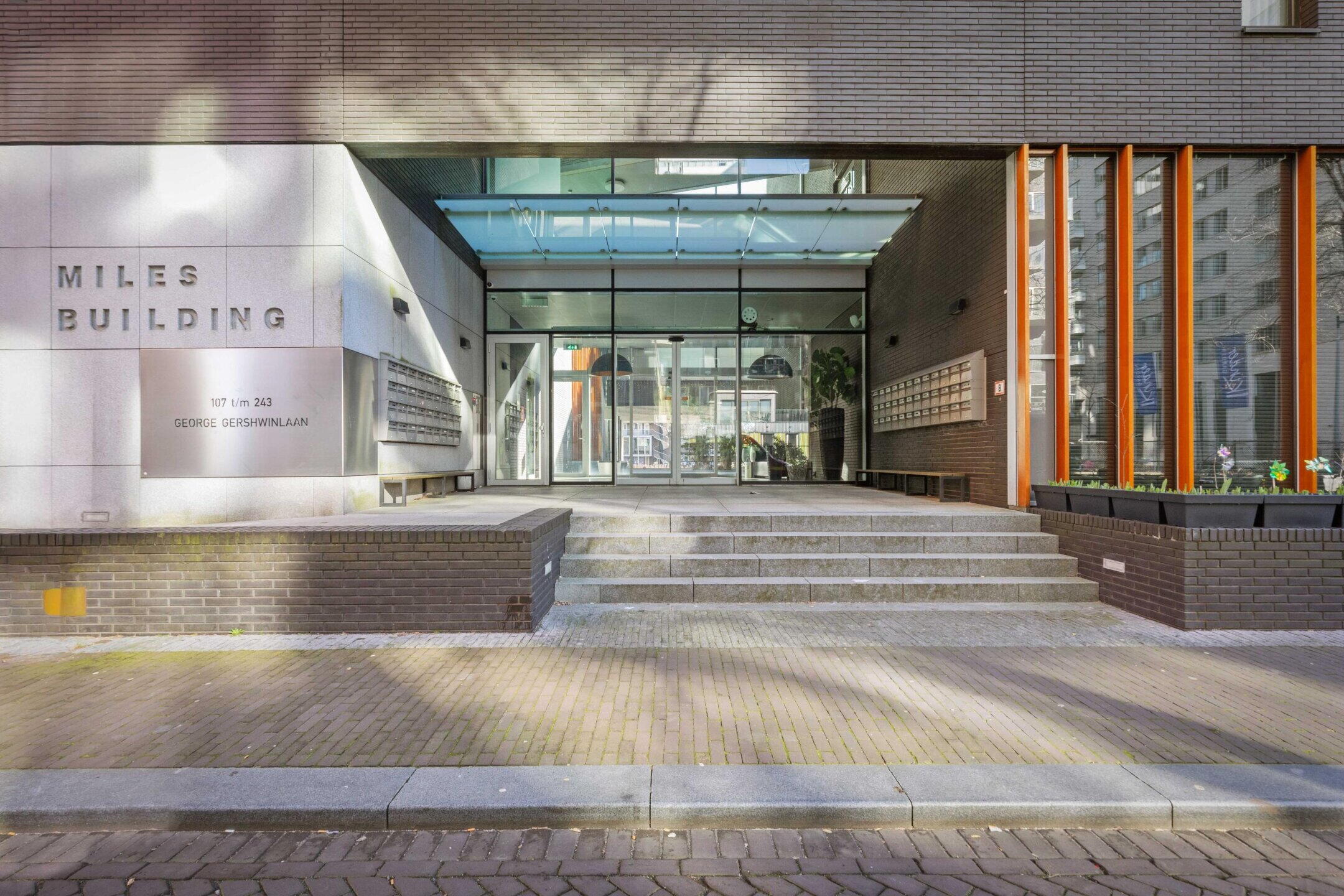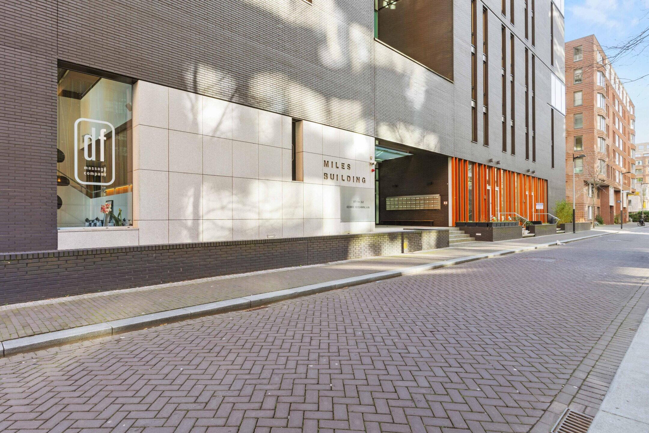 Het appartement maakt deel uit van het moderne Miles Building (2011), een stijlvol en goed onderhouden complex met een representatieve entree, video-intercom, liften, een fraai aangelegde binnentuin en een huismeester.